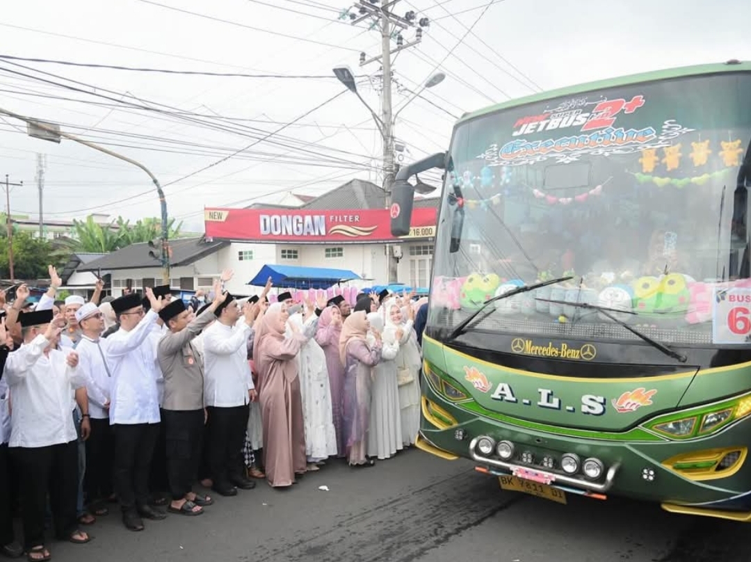 Ketika rombongan jemaah mulai menaiki bus, isak tangis keluarga pun pecah, menambah haru dalam momen perpisahan tersebut. Mobil yang membawa jemaah meninggalkan Masjid Raya Al-Abror dengan iringan doa dan lambaian tangan para pengantar.